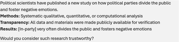 RQ: Do people trust political scientists specifically? Who trusts them? Can trust in research be strengthened through better practices?